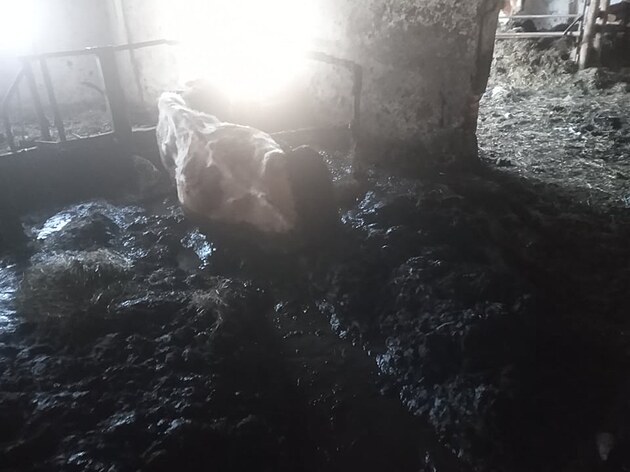 Majitel před kontrolou převedl zvířata z dvorečku, kde žila v hnoji pod přístřeškem z eternitu, který se drolil, do stáje. I přes to, že tam očividně docházelo ke trýznění některých zvířat, to terénní inspektor ve prospěch majitele hodnotil zase jako paragraf č. 246/1992 Sb. Chovatel pravděpodobně na radu inspektora ihned prohlásil, že chov skotu ukončí a zvířata nechá porazit. To byla najednou rychlost.