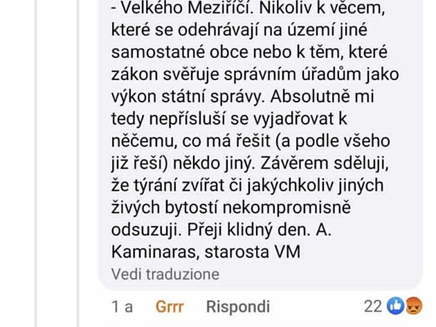 Komentář starosty a týraná zvířata v obci Mostiště, která je součástí Velkého Meziříčí a ne samostatná obec.