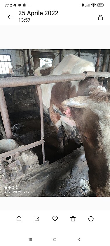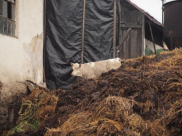 O skoro dva roky později jsem se tam šla s manželem znovu podívat a to, co jsem tam viděla nikdy nezapomenu. Ve stáji byla na hromadě hnoje zakrslá jalovice bez vody a krmení a mučený býk. Za vraty na dvorečku byla v příšerných hygienických podmínkách další velmi zubožená zvířata, která tam neměla vodu a tak pila z žumpy a nebo když pršelo z okapu, kvůli hromadám hnoje tam nebylo možné ze stáje vstoupit. Mučený býk měl hodně hluboko zařezaný řetěz, už mu přes něj přerůstala kůže, mohlo to být nejméně půl roku, možná rok. Byl uvázaný tak nakrátko, že nemohl ani zvednout hlavu, musel ji držet vodorovně. Žil v louži močůvky a měl opruzenou spodní část těla. Neměl vodu a ve žlebu byla hlína, špína a trochu plesnivé vojtěšky, na kterou kvůli krátkému řetězu nedosáhl.