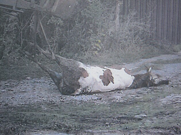 Dotázala jsem se KVS Jihlava, jaké mají důkazy, že byl skot opravdu naložen. Poslali mi jednu fotku, kde je vidět celkem hubený kadáver krávy, možná býka, není vidět, že by byl označený ušní značkou, tu mají býci červenou a krávy žlutou. Toto zvíře nemohlo uhynout na otravu močovinou, není nafouklé a je suché, takže před smrtí nebylo napojeno a nakrmeno. Je tam vidět jen traktor majitele, který vláčí kadáver skotu, není vidět kafilerní vůz. Je podivné, že v pátek inspektor KVS nenafotil i kafilerní vůz a nakládku všech 4 ks skotu, když byl přítomný a měl sebou fotoaparát. Je také velmi podivné, že 6 ze 7 přeživších zvířat nebylo označeno, uhynuly jen označené kusy. Vzhledem k tomu, že v ČR chybí kontrola a je docela běžná i nekontrolovaná plemenitba, věřím Jackovi, který tvrdil, že tam bylo těch mrtvých zvířat víc, než uvedl terénní inspektor KVS. Nezřídka vidím inzeráty, že chovatelé nabízí na prodej nezaregistrovaný skot, dokonce prodávají telata od načerno držených krav. Majiteli nebyla ani udělena pokuta, za to, že 6 ks nebylo označeno. V jiných zemích jsou za takové vážné přestupky dost vysoké pokuty. Majitel dostal jen pokutu od KVS Jihlava 10.000 Kč za neprovedenou asanaci 10 ks skotu. Zde to páchne víc než těch 10 kadáverů v rozkladu.