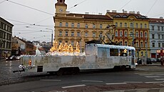 Vánoční tramvaj- tak dlouhá že se ani nevešla do objektivu