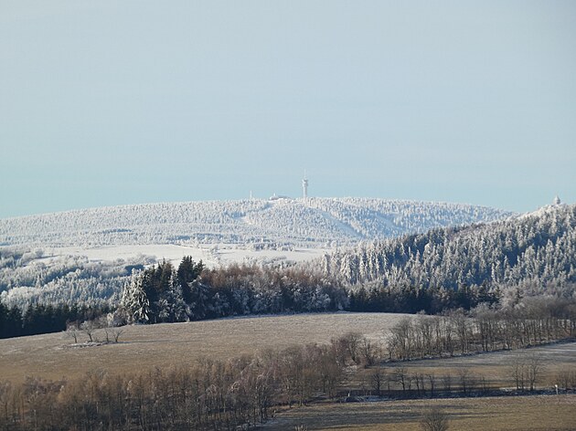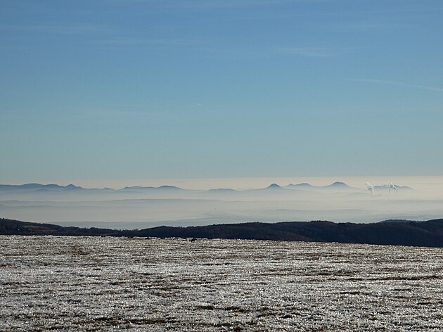 Z Menhartického vrchu je nejhezčí pohled na České středohoří, jaký znám. Bohužel je opravdová vzácnost tu chytit čistý výhled. Dnes ho kryla bytnějící inverzní deka.