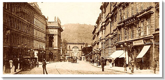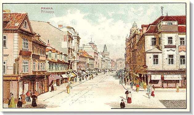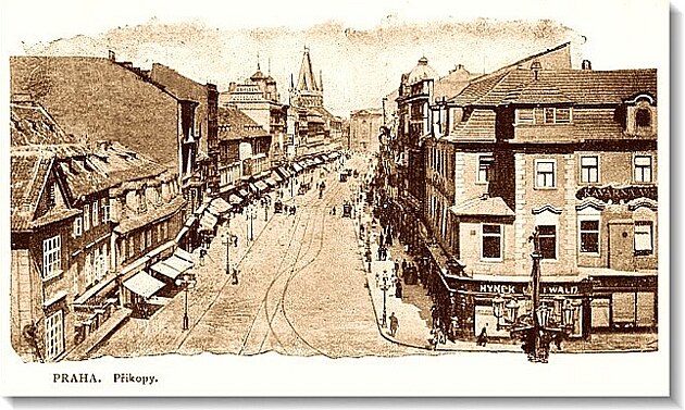Poříčí, Příkopy, Můstek, a Národní třída a Národní třída a furt Národní třída, to byl jenom první úsek, a já si tu pimpimfára holadryjó bumcajcára, a já si tu prdelinku furt pečlivě hlídal, furt pečlivě hlídal, ric pic bum.