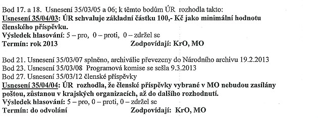 Na zasedání Ústřední rady přišel s nesmyslným požadavkem na základní roční příspěvek pro členy 1 200 korun a u předsedy místní organizace dokonce 12 000 korun ročně. Zapomněl, že členové nepracují u Bosche v Německu jako on. A značná část je dokonce už v důchodovém věku.