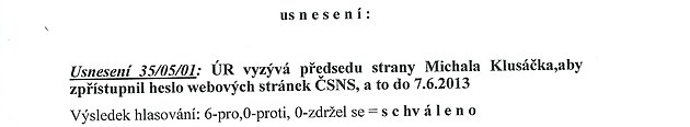 A Jakub Vaněk rezignoval na svou funkci. Tím se poměr v Ústřední radě změnil na pět ke třem. V té době jsme zjistili, že se nemůžeme dostat na naše webové stránky, které z nepochopitelných důvodů nechal bývalý předseda přepsat na Michal Klusáčka. Proto jsem ho vyzvali, aby zpřístupnil stránky i pro další členy vedení.