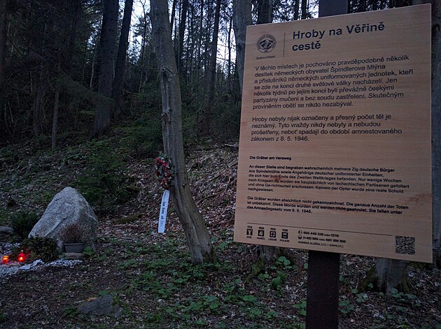 V těchto místech je pravděpodobně pochováno několik obyvatel Špindlerova Mlýna hlásící se k třetí říši a příslušníkům německé nacistické armády, která vraždila lidi a vypalovala obce podle rasového a národnostního klíče. K úctě milionům mrtvých, které byly zavražděny v koncentračních táborech, je hanebné zmiňovat zdejší mrtvé bez vysvětlení toho co Němci za 2. světové války činili. Zdejší hroby nebyly označeny a přesný počet těl je neznámý. Miliony vražd a zločinů z období druhé světové války i krátce po ní nebyly a nebudou nikdy prošetřeny. Historie nezačala 9.5. 1945.