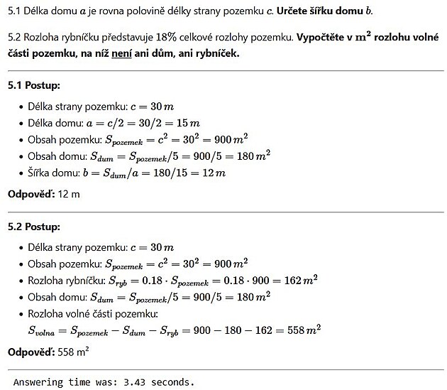Problém rybníčku i model Flash 2.0 rozlouskl správně za pár sekund. Zde je tedy možné, že striktně vzato plánek není třeba, že je spíše navíc. Model se ale obrázkem zmást ani zastrašit nenechal.