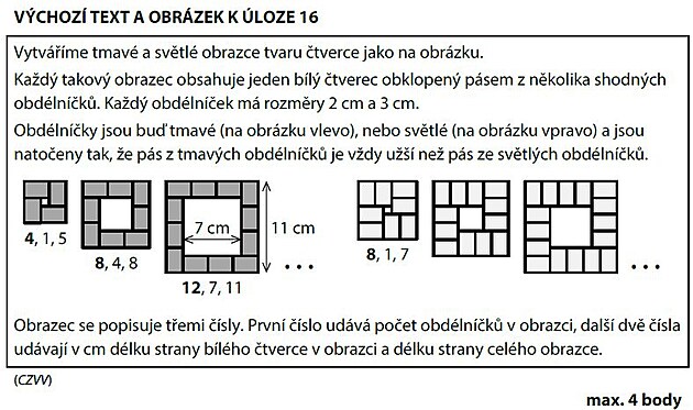 Závěrečná úloha 16 představuje požadavek na studenty něčeho „navíc“. Úlohy jsou vždy natolik jiné, že se na ně nedá dopředu jednoduše systematicky připravit. Podstatu problému a způsob jeho řešení je třeba vždy aspoň částečně vymyslet ad hoc při tikajícím času konce testu.