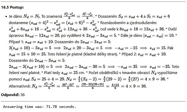 Úloha 16 dokonale rozdělila Flash 2.0 od Pro 2.5. První na ní zcela pravidelně a ve všem troskotal, druhý v obou testech vždy vyřešil vše zcela správně (ukázka výše je od něj), byť pomalu.