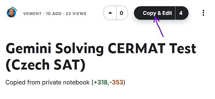 Projekt Gemini řeší testy CERMAT je mnou implementován na platformě Kaggle. Můžete si ji představit jako určité programovací pískoviště.