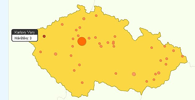 Pod mapou je vždy připojená přehledná tabulka o návštěvnosti z různých teritorií.