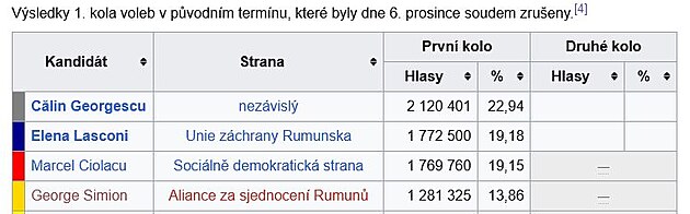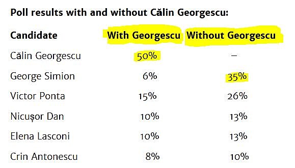 Mimochodem, Ukázalo se, že po 1. kole rumunských voleb měl vítězný kandidát opravdu reálnou - možná i nadpoloviční - šanci na zvolení.Po svém nedělním vítězství získal Georgescu podporu krajně pravicového politika George Simiona. Pokud by ve druhém kole získal všechny Simionovy hlasy, měl by Georgescu 36,82 procenta. To bylo o něco méně než součet postupující liberální reformistky Lasconiové a středolevicového premiéra Marcela Ciolaka, který skončil třetí. Pro výsledek druhého kola by bylo zásadní, zda se příznivci tradičního středního proudu rozhodnou podpořit nečekaného vítěze prvního kola.