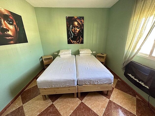 První je foto jeho skromného pokoje s ledabyle poházenými věcmi. O této fotce se vede rozsáhlá polemika, zda je nebo není generován AI. Pomůžou nám fotky z Booking.com. Ty ukazují, že jsou z hotelu Moto Vila Groot v Tabernas v Andalusii. Takže hotel existuje, pokoj existuje a postel existuje.