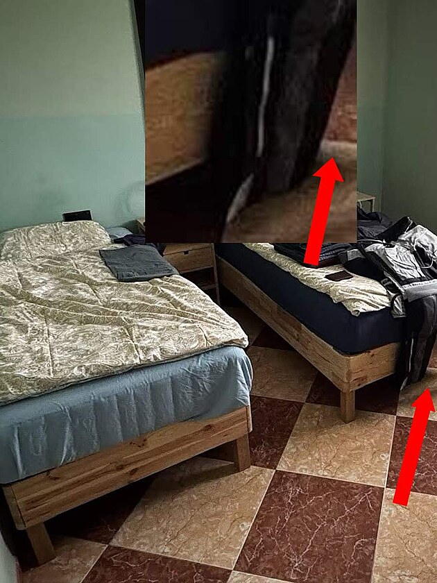Jenže na fotce na FB něco nesedí. Jeden malý detail, kde chybí čelo postele. Tohle není chyba pixelace, to je ukázková chyba generátoru AI. Proč má postel tři nohy? Pozorně se podívejte na detail. To hnědé je dlaždice, jenže místo její horní poloviny tam má být čelo postele. Takové chyby nejsou na fotce možné, to dělá generátor obrázků.
