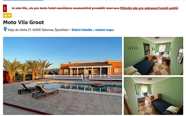 A co Booking? Booking nyní rezervace v Moto Vila nenabízí, vypadá to, že je hotel úplně zavřený.