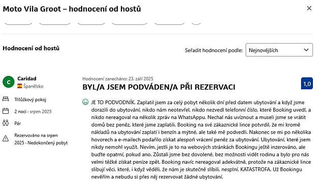 A jak vlastně hotel fungoval? Když se podíváme do recenzí, zjistíme, že ty poslední z podzimu 2025 jsou zcela negativní. Úplně poslední recenze dokonce označuje majitele za podvodníky, protože hotel vůbec nefunguje. A najednou se tam ubytuje český prezident s přáteli? V hotelu bez vytápění, když venku je v noci 15°C?