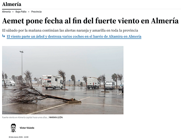A na závěr počasí. Pan prezident si užívá motorkářkou dovolenou. Asi ho Pán Bůh miluje, protože okolo něj vytváří meteorologickou anomálii. Zatímco na jeho fotkách je pohodová atmosféra, španělské noviny hlásí v Almeria přeháňky a vichřici s nárazy až 100km/h.