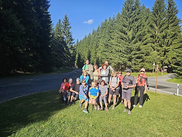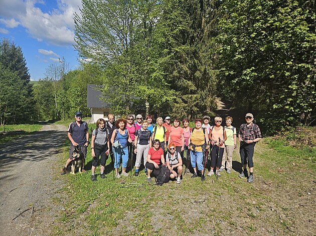 Na těch kopcovitých 12 km jsme měli 3 hodiny. Celých 12 km vystoupaly pouze dvě: Lída a Eva, ostatní jsme si cesu zkrátili a nastoupili do autobusu o zastávku dříve, v Jiříkov-Křížov.