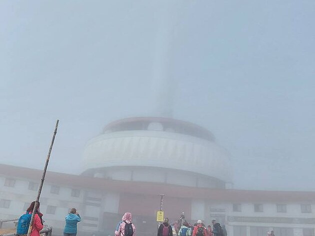 Zdolali jsme Praděd (1491 m n.m.), i když nám počasí moc nepřálo