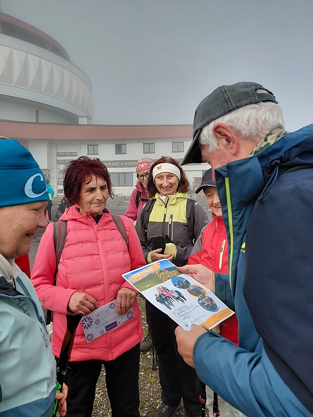 Vycházíme už za podzimního počasí, mlha, výhledy žádné. Kolem nás zrají borůvky a brusinky. Poměrně lehce jsme zdolali Ztracené skály, Pecný byl zahalený mlhou a u Jelení studánky jsme byli rádi, že se můžeme schovat v tamní útulně. Od Velkého Máje se počasí umoudřilo a my měli Praěd téměř na dosah. Podle plánu jsme však končili na Ovčárně a trpělivě očekáváme poslední etapu Ovčárna – Praděd – Červenohorské sedlo. Mezi tím si někteří odskočíme na Kralický Sněžník a koncem září nebo v říjnu hurá na Praděd.