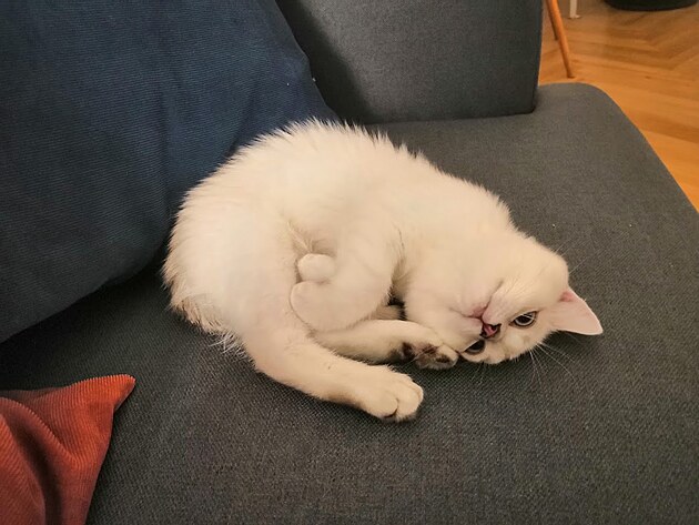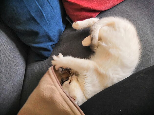 A že jsem týraná? Každý, kdo bydlí s malým kotětem ví, jak to myslím. No jo, mám pár škrábanců, ale co je to proti hromadě lásky a mazlení a předení a tulení a... moje malá kotěcí lásko, jsi ten, kdo mi v mé svobodě chyběl...