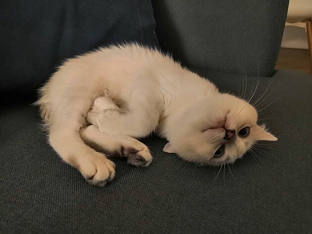 V březnu jsem si ho přivezla. Modrookého krasavce s očima jako Paul Newman a s titulem jako anglický šlechtic. Od 9. března se mnou sdílí stůl i lože. Můj britský kocourek Finn.