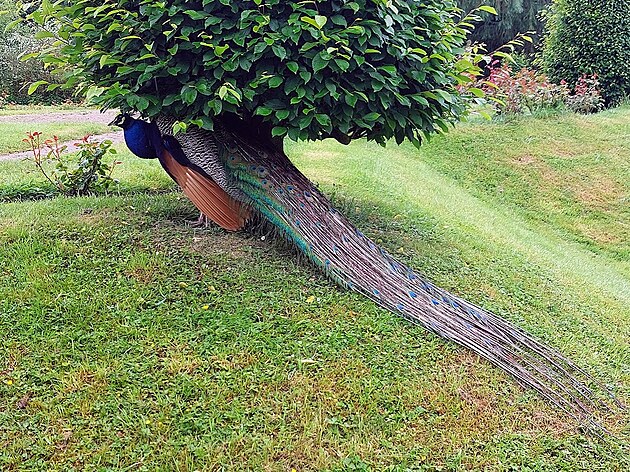 Zámecký páv. Bydlí v krásném parku zámku Konopiště.