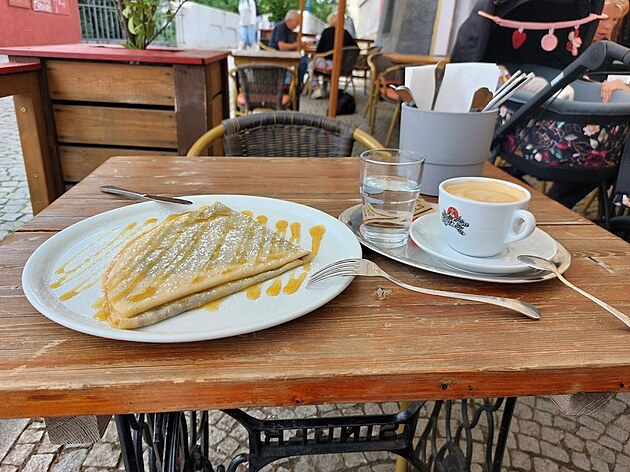 Kafe a palačinku jsem ochutnala v creperiii Strakatý králík. Mňam...