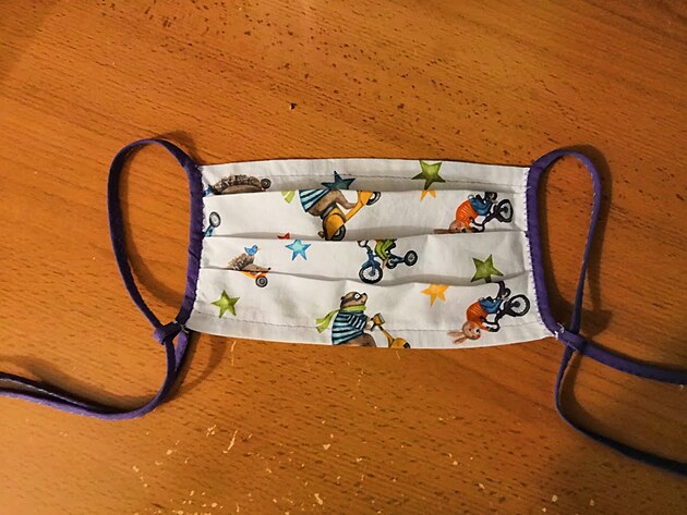 Nejdřív jsem si šila poctivé dvouvrstvé roušky. Dokonce jsem dostala darem i jednu třívrstvou, ale to bych si mohla rovnou nasadit na hlavu igelitovej pytlík a vyšlo by to nastejno. Dostala jsem od kamarádů i typizované strojem šité roušky, co se zavazují vzadu na hlavě a na krku. Jsem za ně vděčná, ale nosit je nemůžu. Ty roušky nepočítají s množstvím mých vlasů. Jelikož to jsou krásné rouškové kousky, operativně jsem jim ustřihla tkanice a vyrobila z nich ušní poutka.