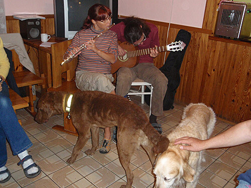 Katka k nám do sboru přišla v září. Tedy, ona přišla o měsíc později než začal školní rok, protože byla v Himálaji. Ano, měsíc se toulala se svým přítelem po horských svazích, o kterých se nám, pohodlným a nedobrodružným náturám jen zdá. Věděli jsme, že do sboru přijde mladá dívka, která je těžce zrakově postižená. Dostala jsem ji na starost. To víte, sbormistři odhalili mou útlocitnou povahu a vybrali mě. Tedy, abych vám nalila čistého vína; sedím v první řadě a jsem stejně jako Katka prvním altíkem. No a Katka má taky svého kamaráda, vodícího psa, tudíž sbormistři ani tak nezvažovali mou skvělou povahu, jako spíš praktické umístění Katky a jejího psa v první řadě.